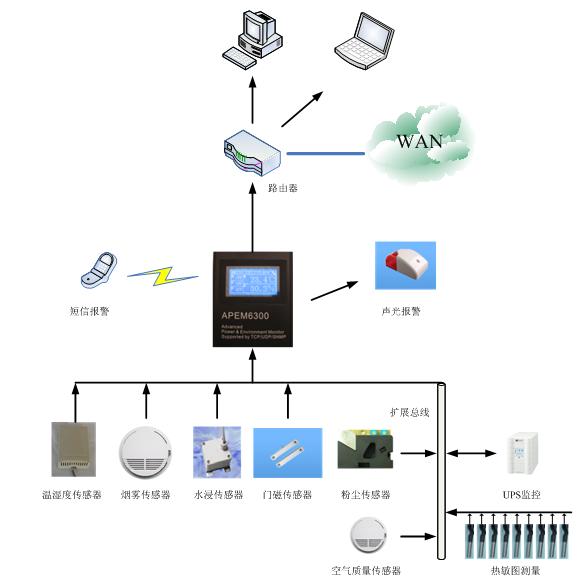 APEM6300機房監控系統完全支持SNMP協議及TCP/UDP等多種網絡協議。支持多種報警模式。