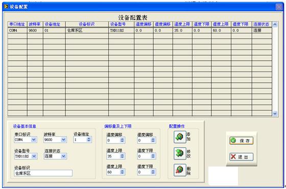 該功能是使用軟件的第一步。點擊主界面中的<設備配置>按鈕進入界面。
