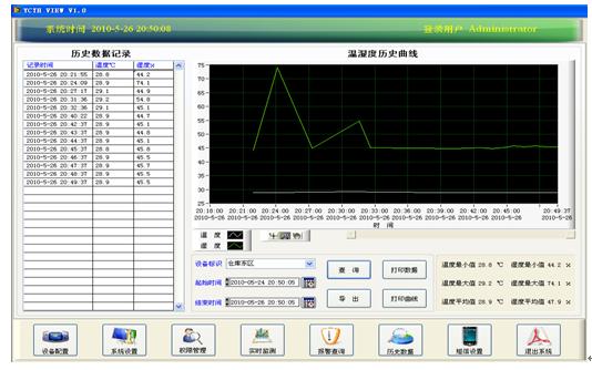 溫濕度采集監測報警軟件具備溫濕度傳感器的數據采集、數據存儲、數據分析、溫濕度上下限報警、短信報警提醒等功能;采用圖形化顯示界面,提供柱狀圖、實時曲線、歷史曲線等顯示手段,使用戶觀察數據更加直觀和方便。