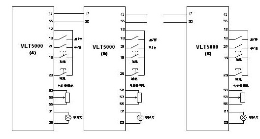 在工業(yè)輸送設(shè)備中,需要按照一定的速比實現(xiàn)多臺電機(jī)聯(lián)動。以往要實現(xiàn)此功能大都是通過機(jī)械裝置來完成,電氣方面的解決方案往往依靠大量的PLC模擬量模塊來實現(xiàn),使得系統(tǒng)存在靈活性低、維護(hù)工作量大、工藝復(fù)雜、成本較高、安裝困難等缺點。通過采用丹佛斯VLT5000系列變頻器,我們有了新的解決方案。