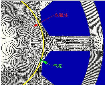 普通的永磁同步電機機構如圖一,定子為普通的硅鋼片,導磁性能良好;轉子表面覆蓋永磁體,轉子內部依然為導磁性能良好的鐵。轉子與定子之間的氣隙約0.2毫米,與普通異步電機相仿。