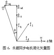 忽略定子電阻和漏抗以后,可以得到永磁同步電機簡化的矢量圖如圖六。