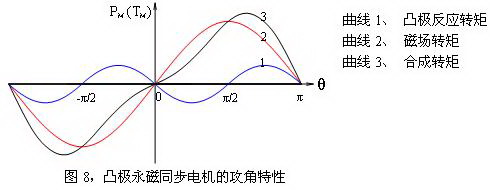 由于凸極反應轉矩的影響,隱極永磁同步電機的功角特性變差。