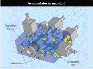 在需要微型蓄能器的應用中,蓄能器集成塊更具有創新性。(圖3)向我們展示了包含一個完整的蓄能器的液壓集成塊的3D模型。一個主孔用來放置蓄能器活塞。當然,這樣的集成塊還包括各式各樣的控制閥。
