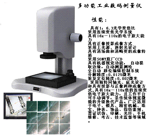 是以現代光學為基礎,運用數字圖像處理、計算機通信和機器視覺系統為一體的現代視覺系統的綜合運用。視覺測量 視覺檢測 視覺定位 視覺分析 集合了數字科技成果與計算機屏幕測量技術的數碼投影測量系統,它應用了獨有的雙向同步倍率校正技術(專利),采用獨特同軸光、底光、側光設計和具有投影與正像兩種成像方式,測量精度為±2um,分辨率0.001mm.能夠有效的解決了電子產品的誤差和屏幕的局限和滿足各種倍率的要求。產品是針對精密電子產品檢測制造業日益精湛的加工工藝所帶來的精確需求開發而成。MTC280系列機器視覺系統是機器視覺檢測、測量. 識別、定位.與嵌入式ARM等高技術軟件開發,目前已廣泛應用于裝備制造、工業部件檢測、包裝檢測、印刷檢測、工業測量、劃痕(工損檢測)設備運動識別、定位等領域。提供實用、先進的解決方案服務于相關行業的開拓者!凹夹g創新與企業實際需求相結合”是產品開發的主導思想,也是我們提供產品和服務的指導思想。 MTC280系列機器視覺系統為解決現代工業產品生產過程中涉及的各種各樣的檢查、測量和識別、定位等問題推出的一套機器視覺系統解決方案。 適用于大批量生產過程中的質量檢查,如:零件裝配完整性,裝配尺寸精度,零件加工精度,位置/角度測量,零件識別,特性/字符識別等。 應用行業:汽車,制藥,電子與電氣,制造,包裝/食品/飲料,醫學等。如對汽車儀表盤加工精度的檢查,高速貼片機上對電子元件的快速定位,對管腳數目的檢查,對IC表面印字符的辨識,膠囊生產中對膠囊壁厚和外觀缺陷的檢查,軸承生產中對滾珠數量和破損情況的檢查,食品包裝上面對生產日期的辨識,對標簽貼放位置的檢查。二、視覺系統特性: 1、 獨立的高速處理器,保障在線檢測速度要求 2、 嵌入式軟、硬件結構、保證系統高穩定性和可靠性 3、能方便的與生產線設備連接/應用 4、 系統操作簡單、方便5、 提供多種視頻圖像輸入輸出、I/O控制、通訊等接口 6、 豐富的TCP/IP控制命令 7. 擁有光學強大的檢測功能 強大的信息采集和信息共享功能 8.尺寸測量.CNC走位自動測量 9.自動學習批量測量檢測定位等.10.CNC掃描批量測量檢測定位等11.自動對焦輔助測高,12影像地圖全屏牽引,13.鷹眼縮放精確回位,14SPC報告超標報警; CAD逆向測繪15. CNC快速測量檢測定位等,16.空間坐標旋轉,17.內置 SPC 功能,18實時修正誤差 ,19定位識別 /信息采集對比等功能20.統計分析.21.信息采集導入CAD導出軌跡功能,測精度為±2um。信息采集1秒/4-10次.誤查精度±2um,取像時間/運算時間250-100毫秒/視野250FOV/秒