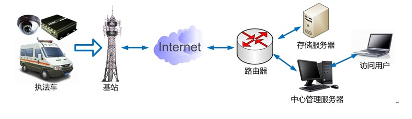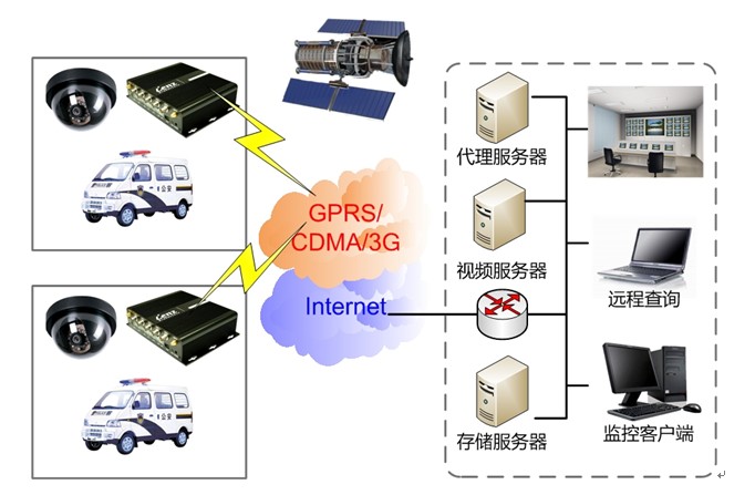 本系統利用GPRS/CDMA/3G無線網絡將視頻信號從前端監控攝像點傳輸到監控中心,監控中心可以通過專線或Internet連接到機房與無線網絡的分組數據服務節點連接。