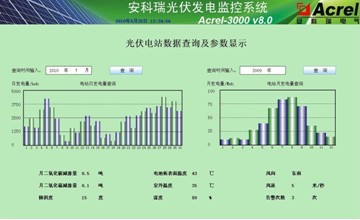 監控系統對光伏發電的發電量可形成月棒圖及年度棒圖顯示,并折算成二氧化碳、二氧化硫減排量值;并可查看太陽輻射強度趨勢曲線、風速變化趨勢曲線顯示