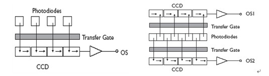 線陣CCD結構(左為單通道、右為雙通道)