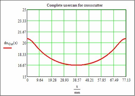 但是對于鋼筋剪切,假如剪切刀在同步運動時剪切刀轉速和送料速度一致,則在剪切時剪切刀在送料方向上的分量與送料速度不一致,將會造成堵住鋼筋或者拖拽鋼筋的情況,所以切割鋼筋時需要剪切刀速度在送料方向的分量和送料速度在同步區(qū)一致。這時需要在同步區(qū)附加一段曲線來實現(xiàn)上述功能。
