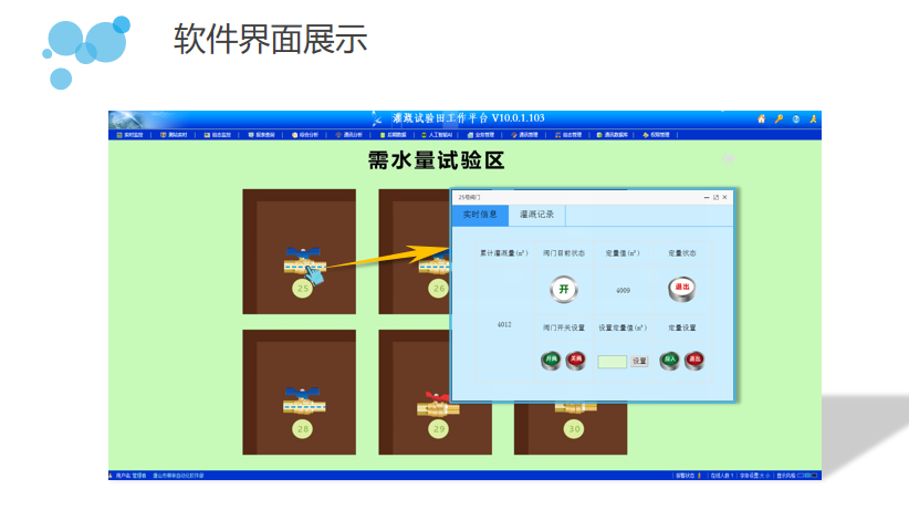 傳統的人工試驗站費時、費力且數據采集不及時準確,不但會增加試驗運行費用、影響試驗成果,更重要的是不能準確的為高效節水灌溉技術規劃設計和工程建設與管理提供技術支撐。因此提高灌溉試驗的試驗水平和試驗手段,改變傳統的人工試驗方法,克服人工試驗費時、費力、數據采集不及時準確等不足,應用新型的適應于灌溉試驗實際需要的“灌溉試驗自動測控系統”是非常必需的。