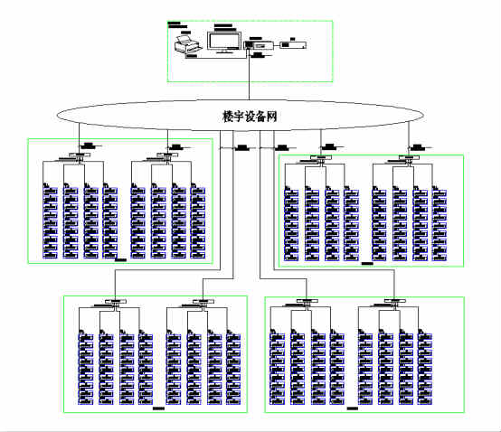 系統采用安科瑞能耗管理系統ACREL-5000,監測地上E座1#、2#、3#、4#強電間和地下低壓變配電室多功能儀表共400只儀表。在1#、2#、3#、4#弱電間分別放置兩臺安科瑞通訊管理機ANET-2E4S,多功能儀表之間通過485通訊線按手拉手方式連接到通訊管理機,通訊管理機接入文化商務中心的設備網內,通過設備網與平臺服務器形成組網。