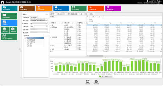 系統可將各主要耗能設備的能耗與去年同期值和上月值進行同比環比分析,檢驗節能效果,根據分析結果執行節能績效考核,以及節能目標的修正。統計各支路當年每月用能及去年同期用能;