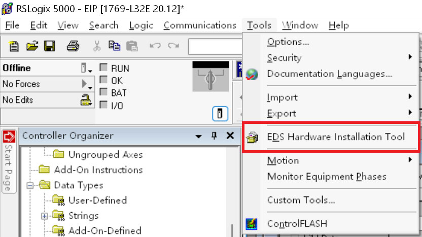 詳細(xì)操作步驟:打開(kāi)RSLogix5000,進(jìn)行硬件組態(tài),首先添加網(wǎng)關(guān)的EDS文件;