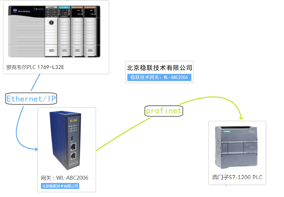 1、羅克韋爾(AB) PLC 1769-L32E以太網(wǎng)通訊(EtherNet/IP)與西門子S7-1200 PLC(PROFINET)進(jìn)行連接。今天與大家分享一篇EtherNet/IP轉(zhuǎn)PROFINET的通訊配置方案。本文主要介紹穩(wěn)聯(lián)技術(shù)的EtherNet/IP轉(zhuǎn)PROFINET網(wǎng)關(guān)WL-ABC2006,連接西門子S7-1200 PLC與羅克韋爾(AB) PLC 1769-L32E 通訊的配置過(guò)程,供大家參考。