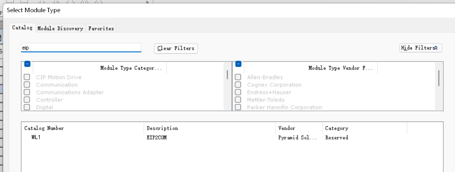 4、輸入EIP尋找EtherNet/IP轉(zhuǎn)PROFINET網(wǎng)關(guān)模塊,名稱顯示為WL1;