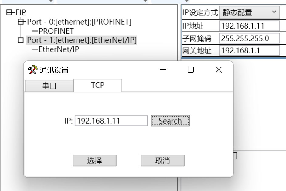 14、設(shè)置EtherNet/IP轉(zhuǎn)PROFINET網(wǎng)關(guān)在羅克韋爾(AB) PLC中的IP地址與組態(tài)中保持一致;
